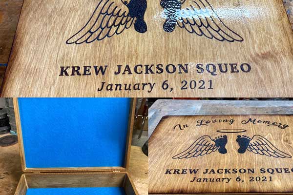 felt available. Any design can be wood burned or engraved on all sides of the box.