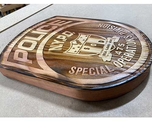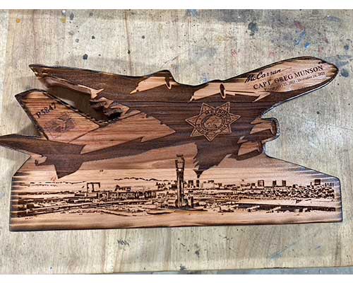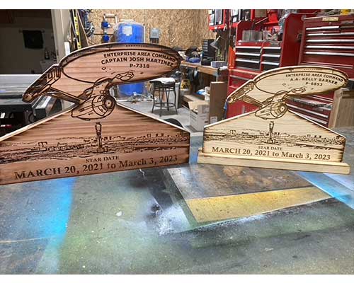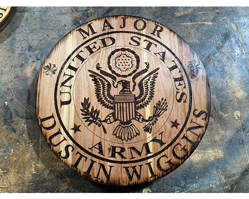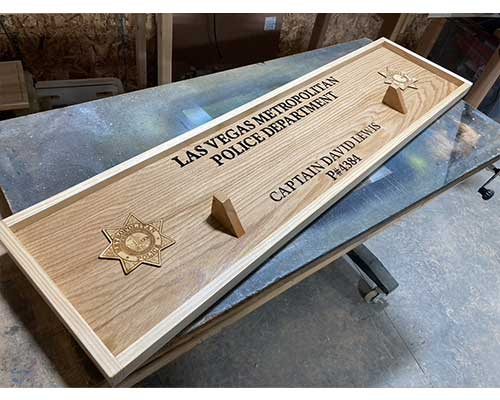 Customized boxes are made of pre-fabricated cornice boxes. Completed boxes are lined with any color felt available. Any design can be wood burned or engraved on all sides of the box.
